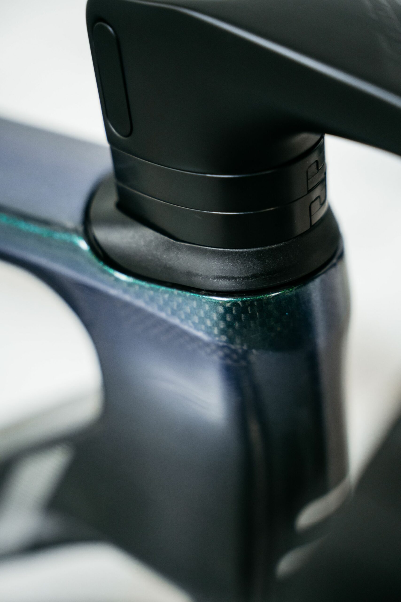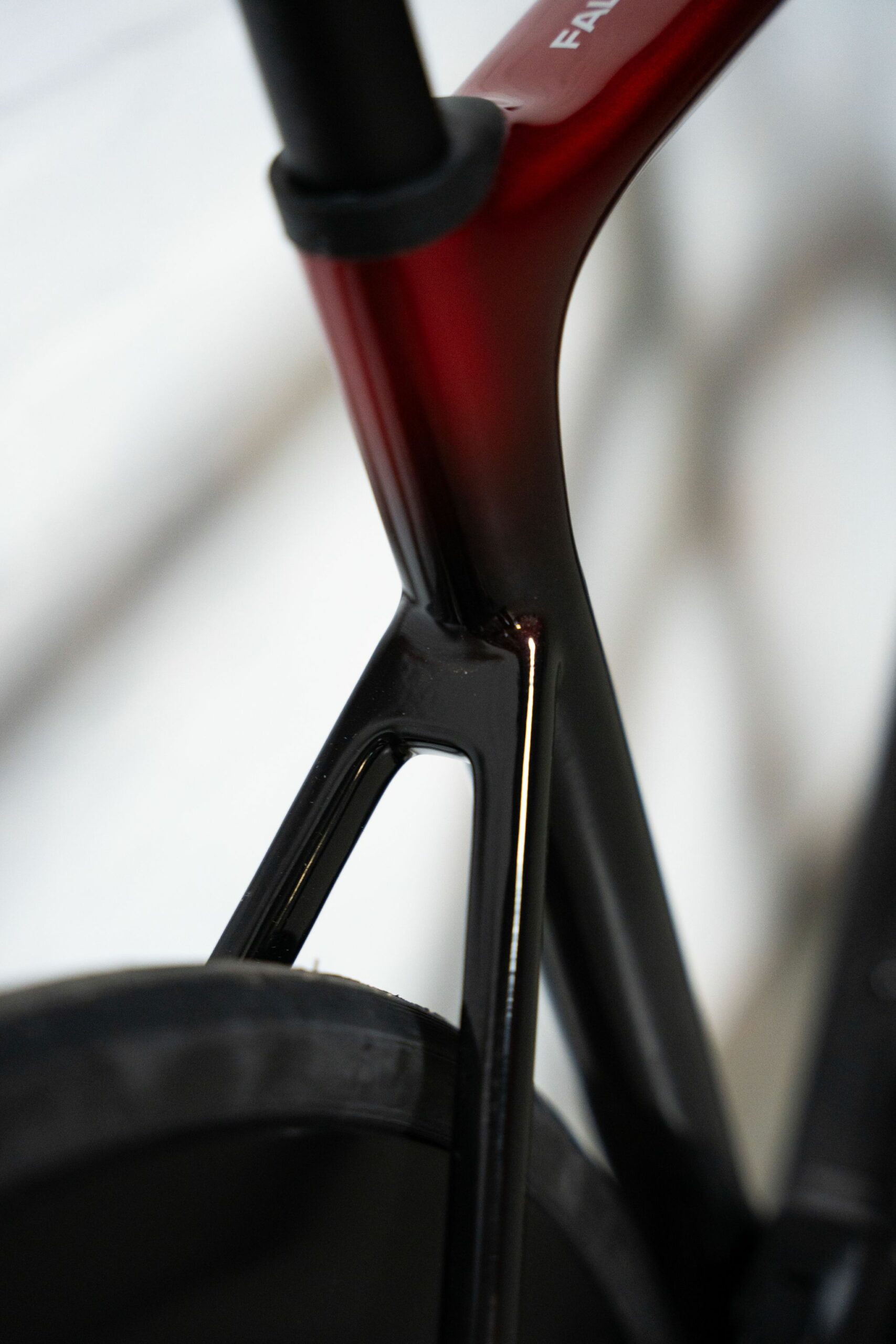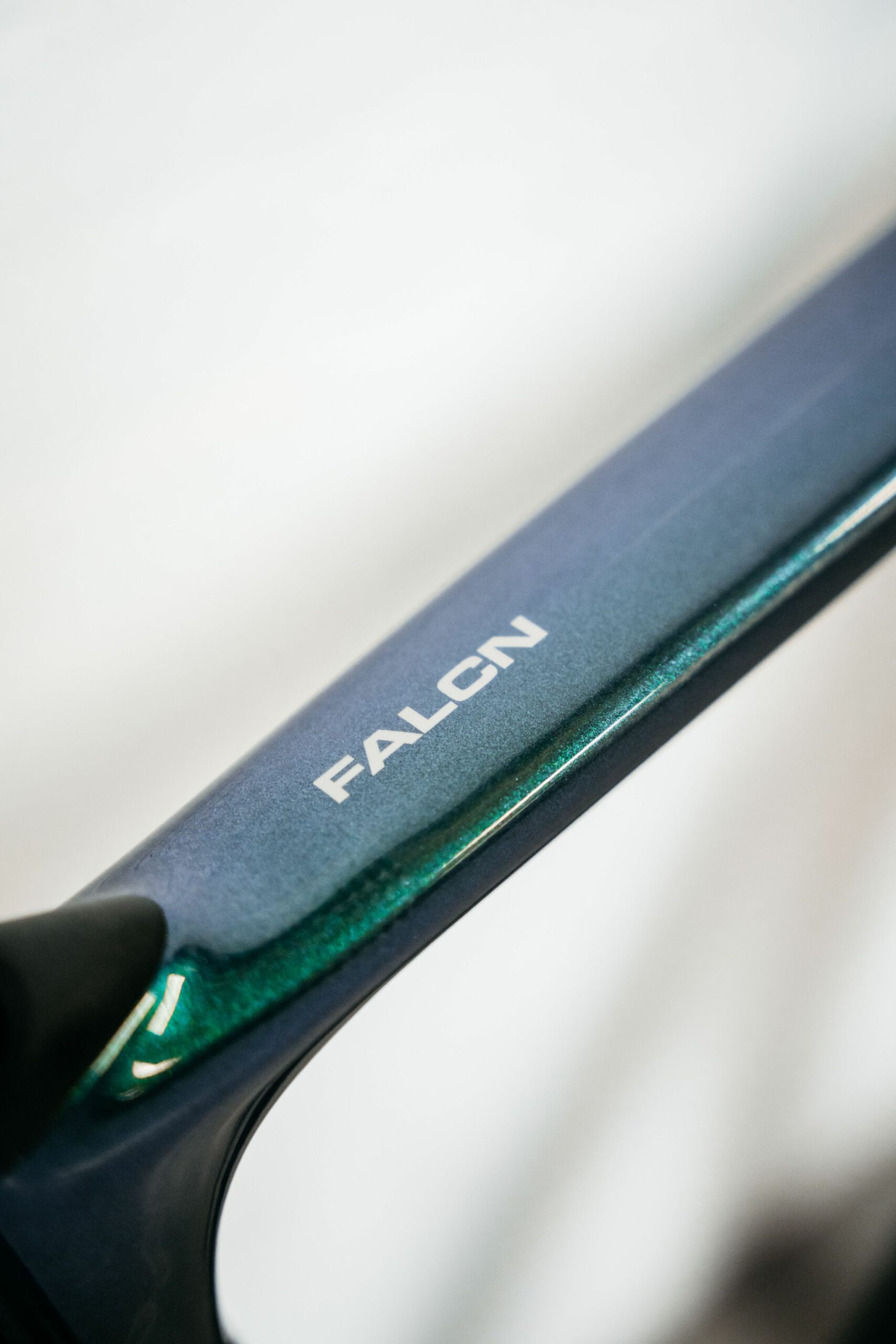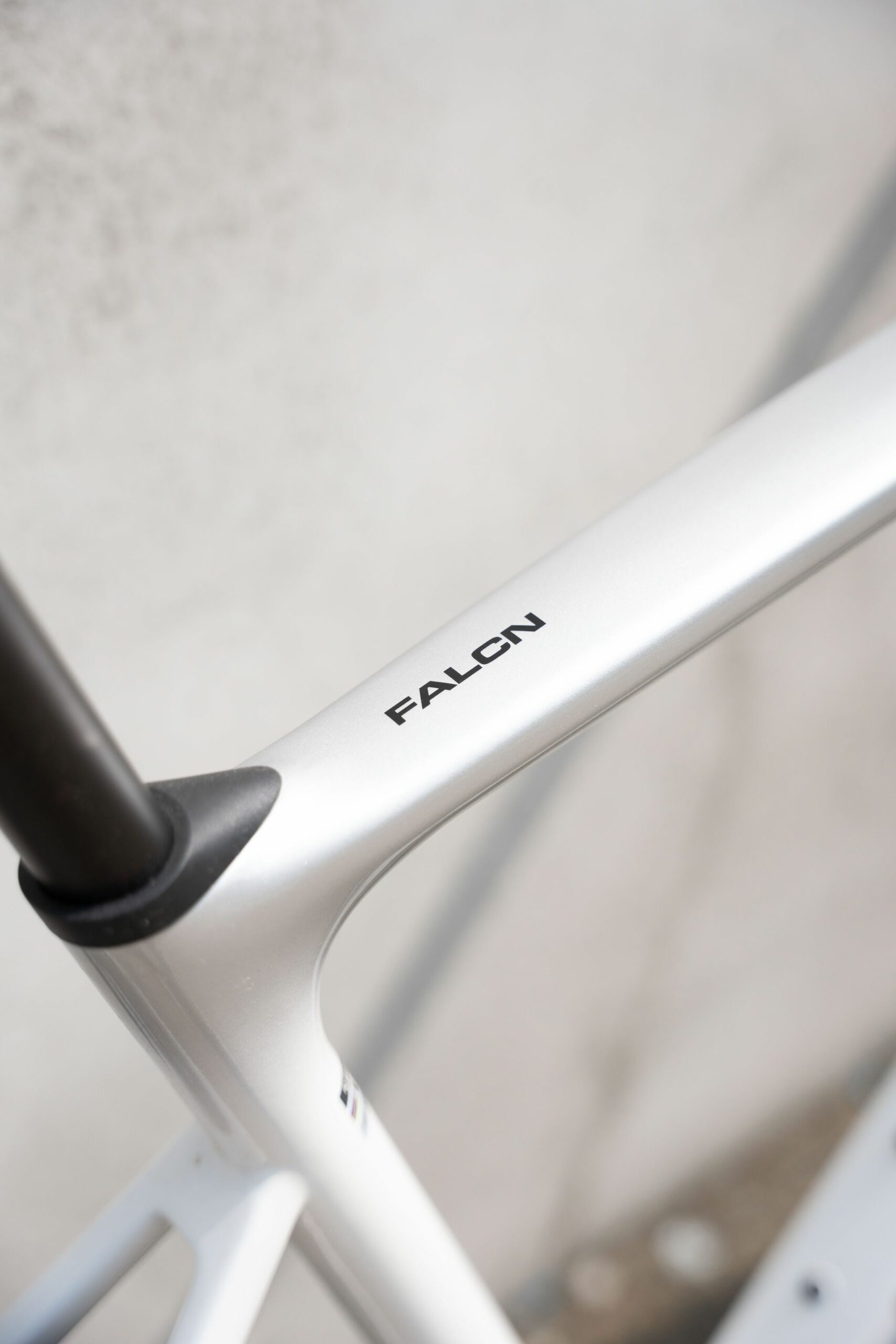 The points of difference are in the round seatpost on the Falcn Essential (versus a D-shaped seatpost on the Falcn RS) and the carbon composition. Nevertheless, the frame of the Falcn Essential still weighs only 990 grams.