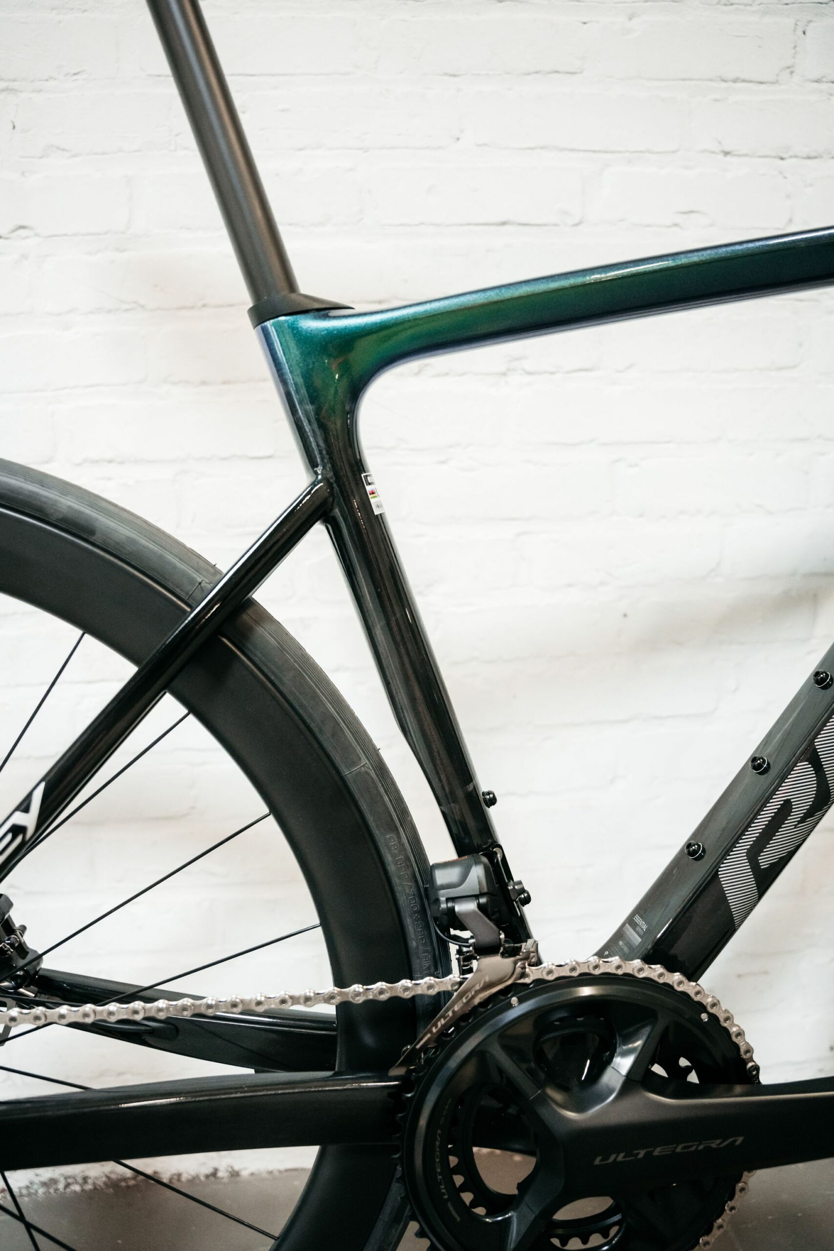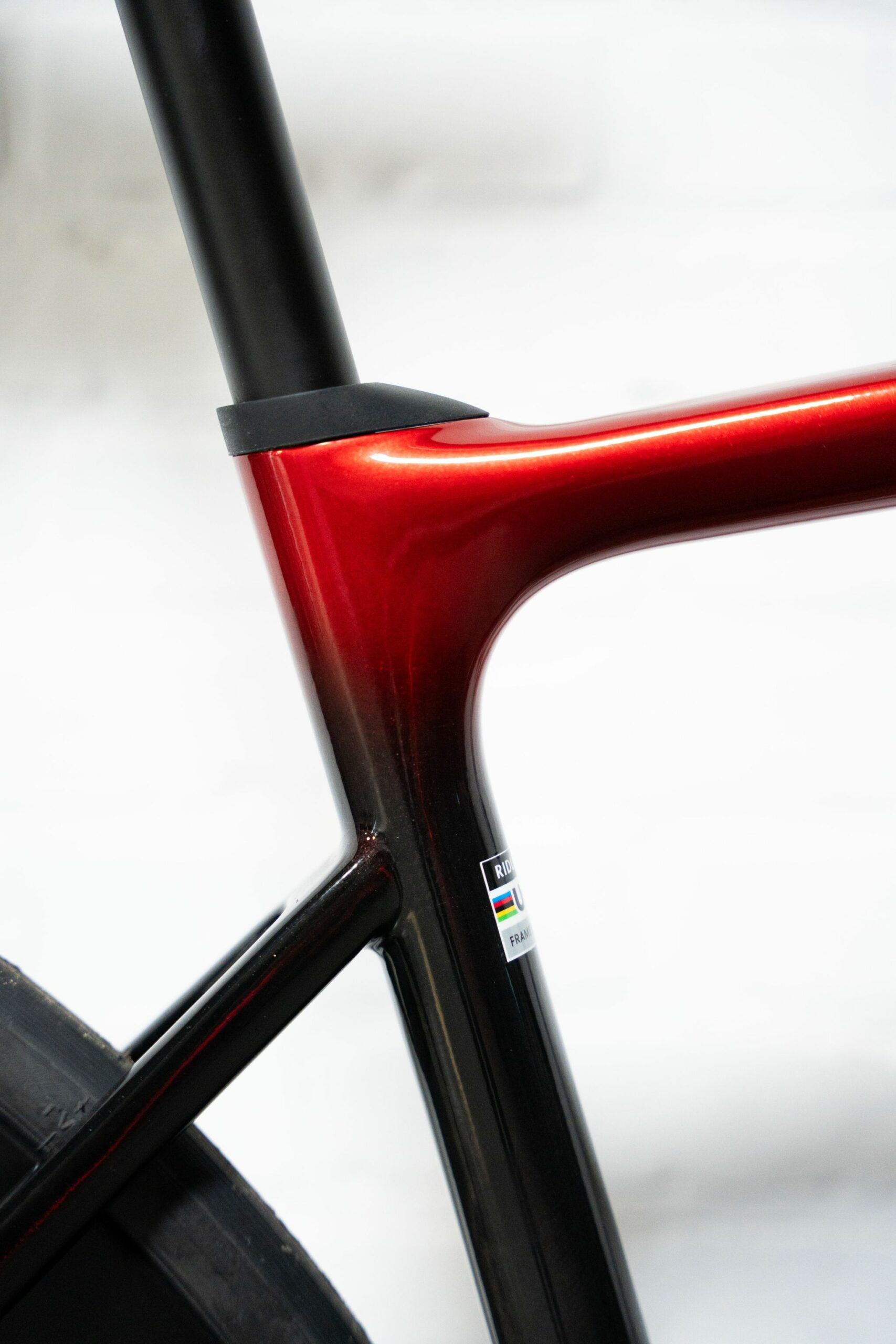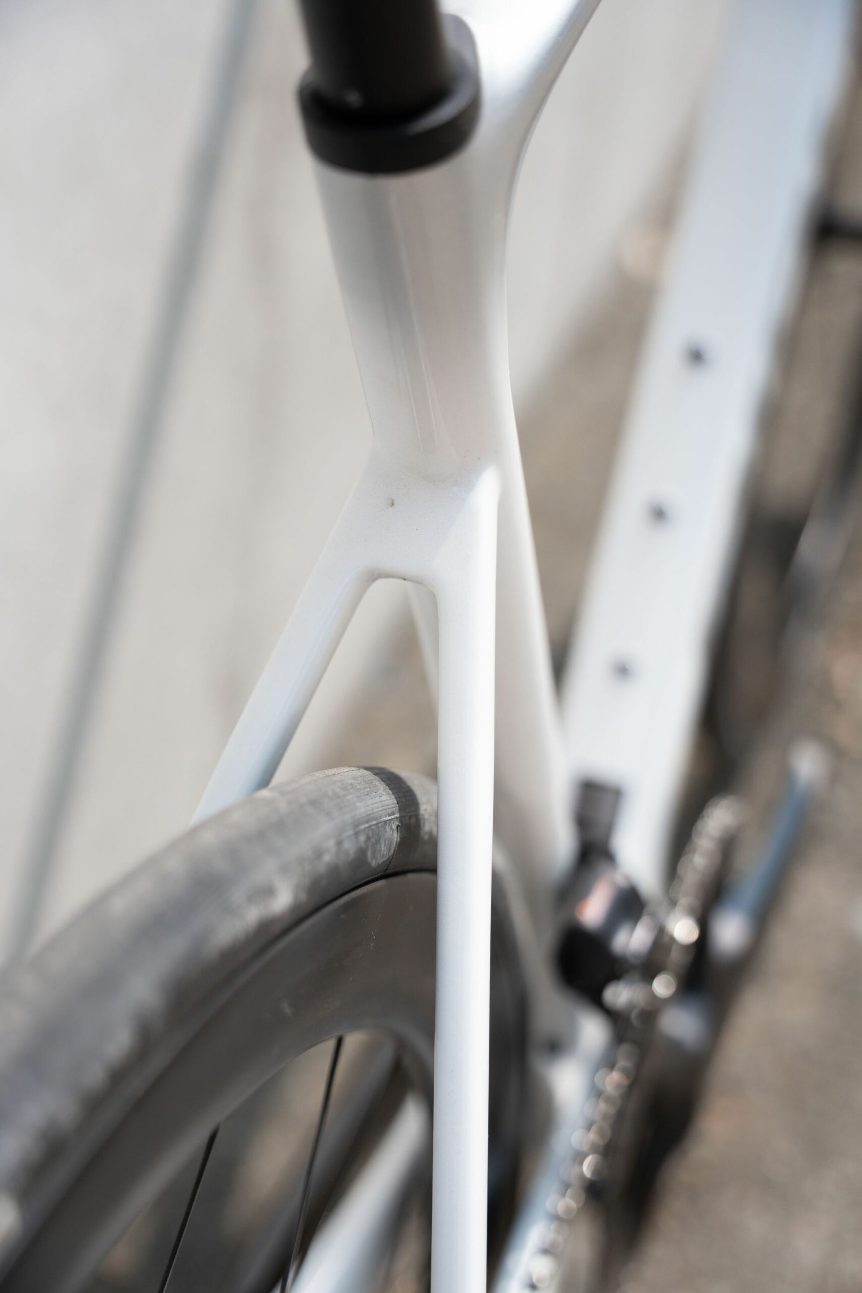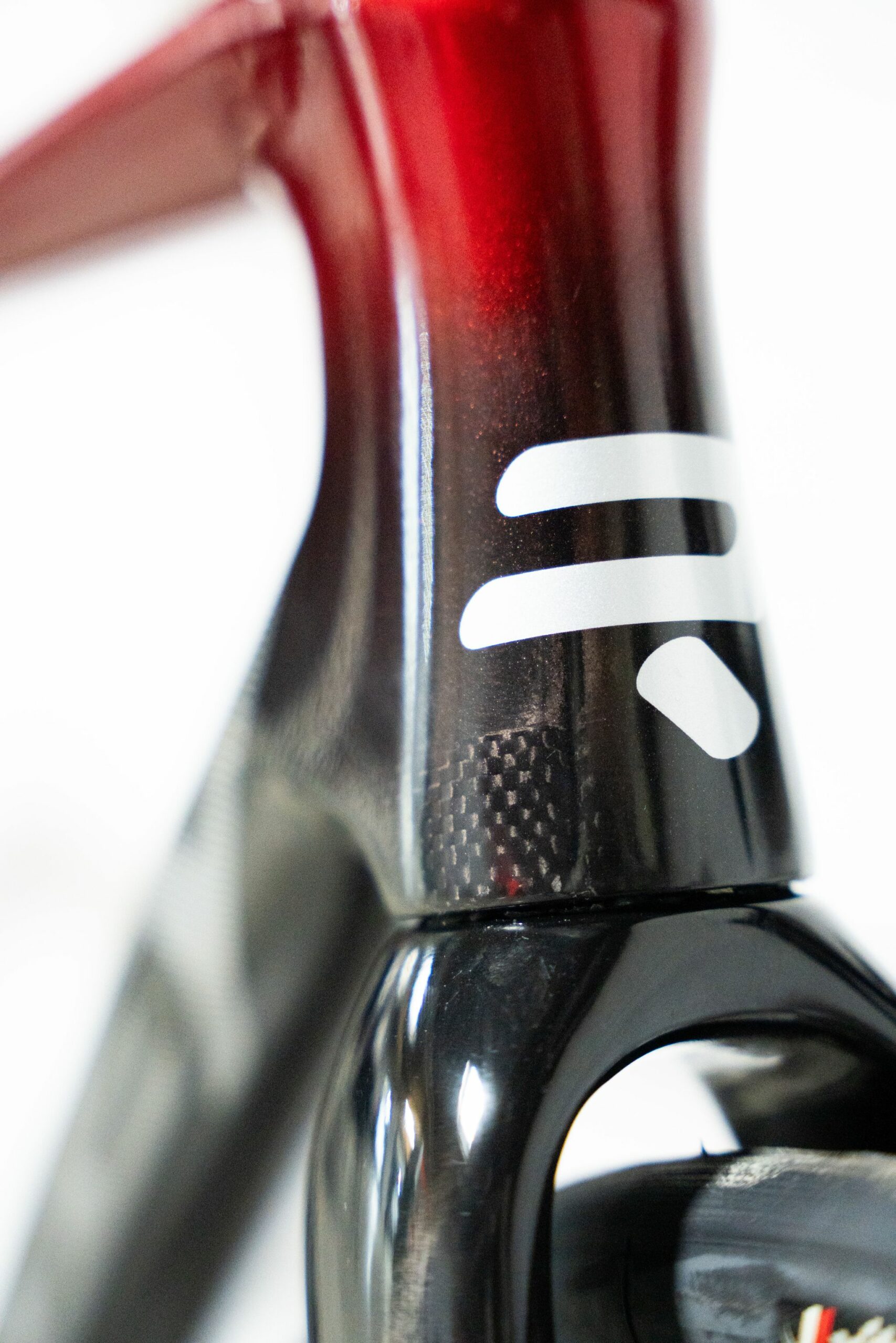 The points of difference are in the round seatpost on the Falcn Essential (versus a D-shaped seatpost on the Falcn RS) and the carbon composition. Nevertheless, the frame of the Falcn Essential still weighs only 990 grams.